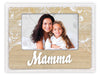 Cornice Manola IT in legno, colore marrone e bianco, con scritta MAMMA a rilievo e stampa floreale bianca, da tavolo, adatta come regalo per la festa della mamma, ideale per celebrare anniversari o compleanni, adatta per casa e ufficio.