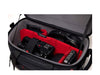 Il vano principale è dotato di tre divisori M-Guard, di cui uno divisibile in due per personalizzare l’interno della borsa in base all’attrezzatura. È presente un anello elastico per fissare la videocamera in movimento