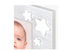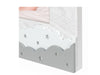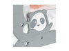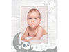 Cornice Yoshi in legno, colore bianco e grigio, con decori a rilievo a forma di panda e luna, da tavolo, ideale per celebrare la nascita, adatta ad un bambino/a, a tema baby.