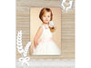 Cornice Ginevra in legno, colore marrone, con decoro a rilievo in 3D a forma di spiga, libro e calice, da tavolo, adatta al tema della comunione.