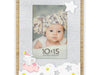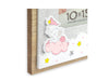Cornice Ilaria Pink in legno, colore bianco e marrone, con decori a rilievo e traforati, a forma di elefante e stelle, da tavolo, ideale per celebrare la nascita, adatta ad un bambina, a tema baby.