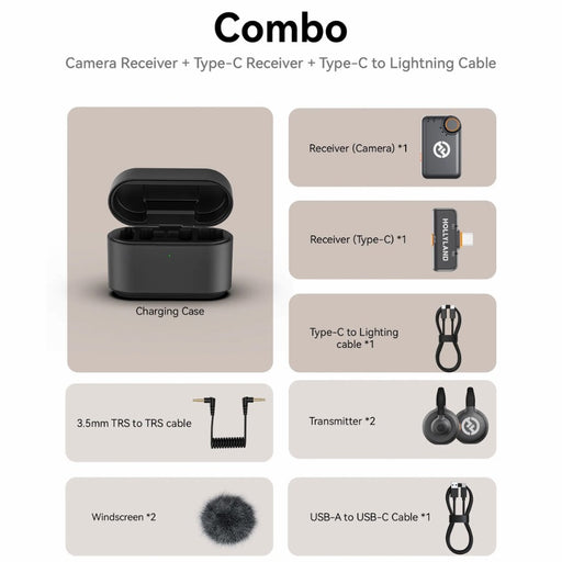 Visualizza tutti i dettagliHollyland LARK M2S Combo: con Ricevitore Camera + Ricevitore USB-C + Cavo USB-C a Lightning Registra fino a due persone in applicazioni di giornal...