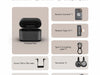 - La custodia di ricarica è progettata specificamente per contenere entrambi i ricevitori e i due trasmettitori. La sua batteria interna da 1300 mAh può ricaricare l’intero sistema più volte per una durata totale della batteria di 30 ore.