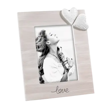 Portaritratti in legno con finitura bianco e oro spazzolato.Dimensioni: 13x18.