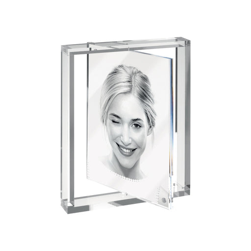 Portaritratti doubleface e girevole in acrilico, con base autoportante. Dimensioni: (13x18)