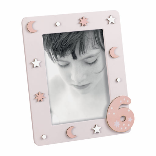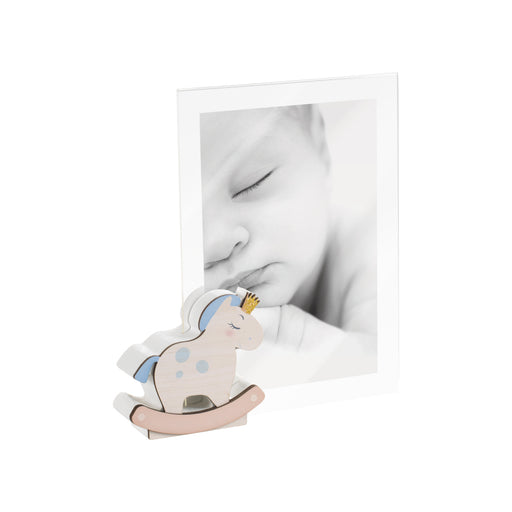 PORTAFOTO IN ACRILICOA1745 13x18 ROSACon base in mdf sagomata e colorata e corona glitterata. Per foto verticale. Styled by Felix.