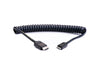 Cavo Atomos 4K60C4 Mini HDMI to HDMI a spirale maschio, che consente di trasmettere i segnali HDMI 2.0 tra dispositivi e componenti.